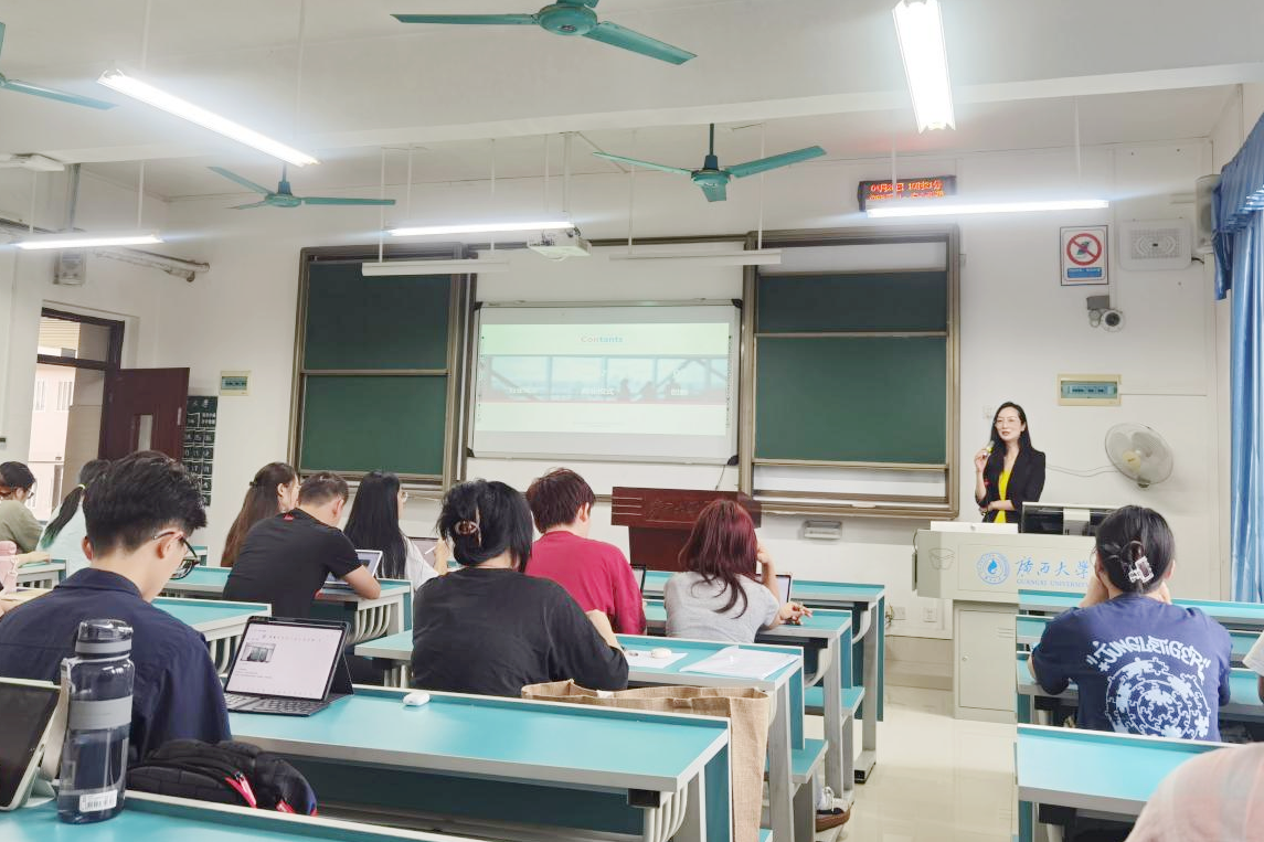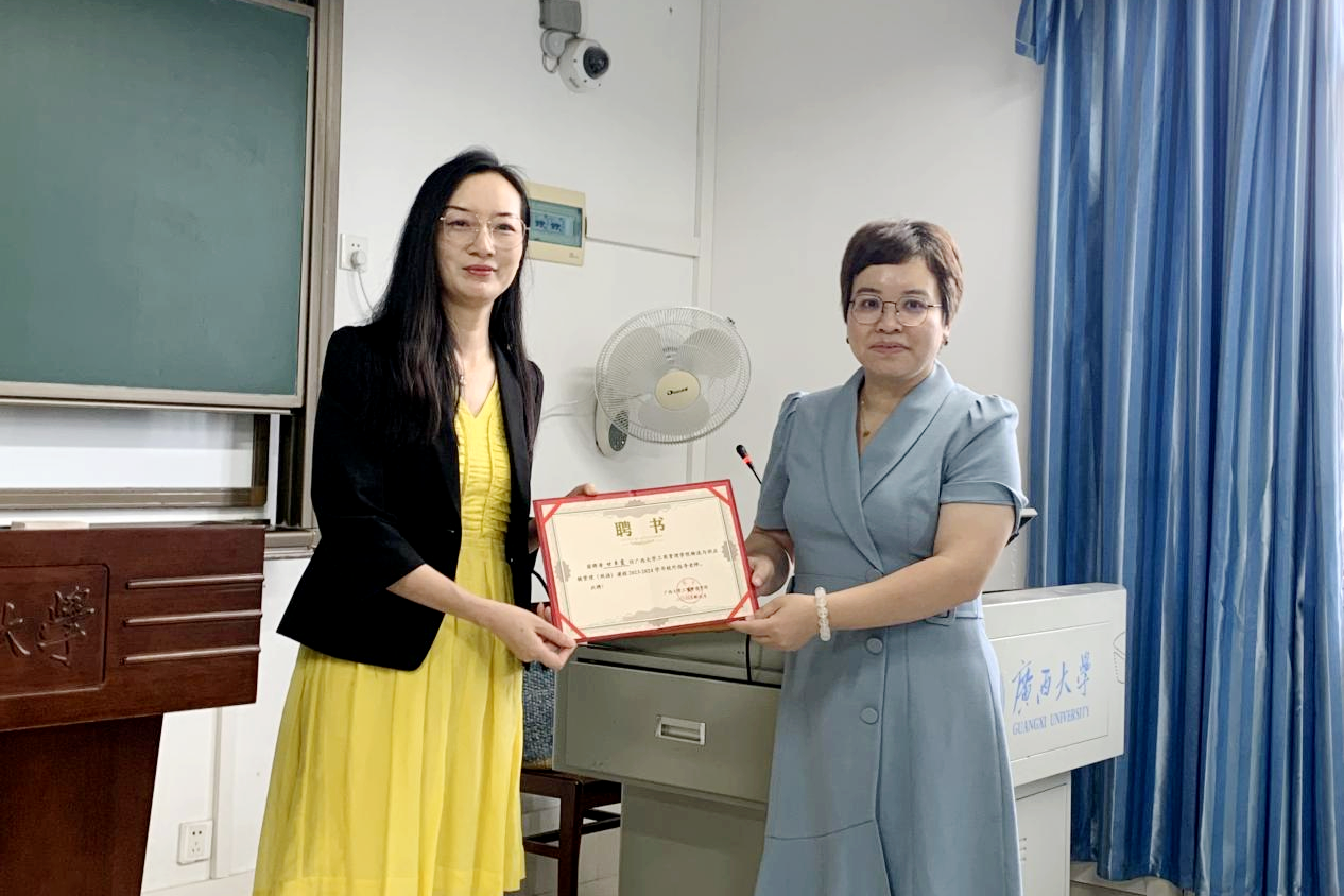4月26日上午,广西供应链服务集团有限公司常务副总经理甘卓霞受邀走进企业管理系课堂,并受聘为《物流与供应链管理(双语)》课程的校外指导老师。