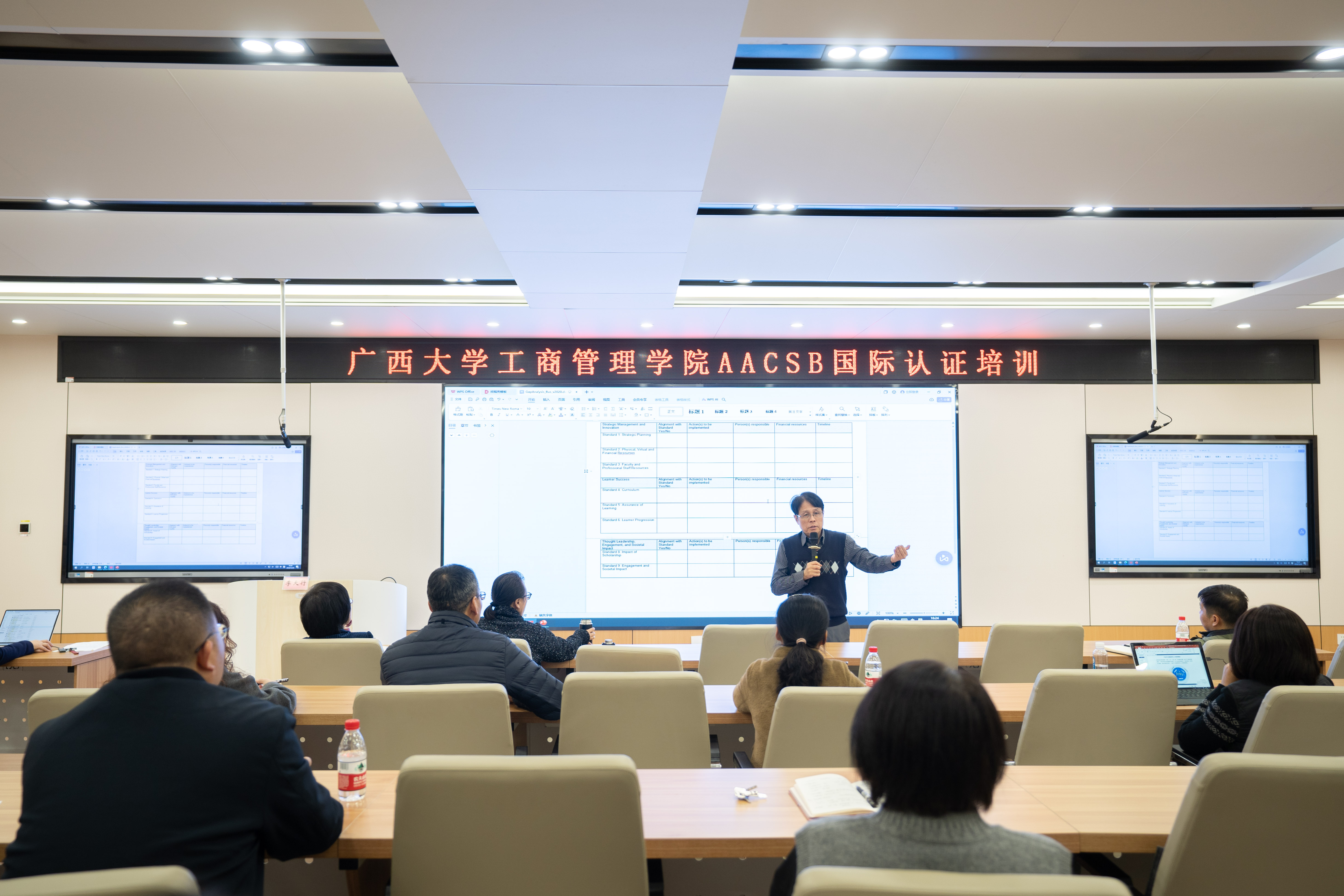 为加快推进AACSB国际认证工作,公司近期成功举办了系列培训活动,特邀台湾辅仁大学李天行教授与西南财经大学徐秋萍老师为公司教职工进行专业指导。